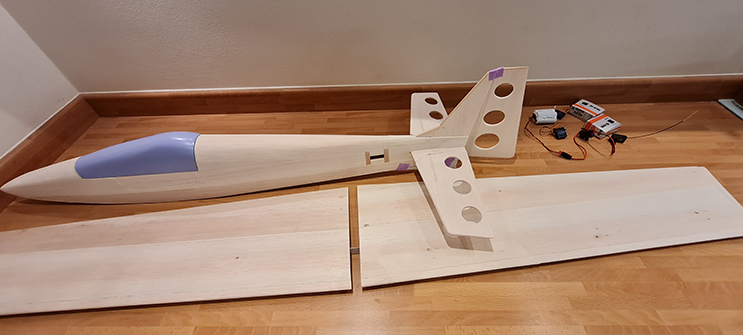 and a stack of sheet balsa and a plan, in pieces from last time, so
